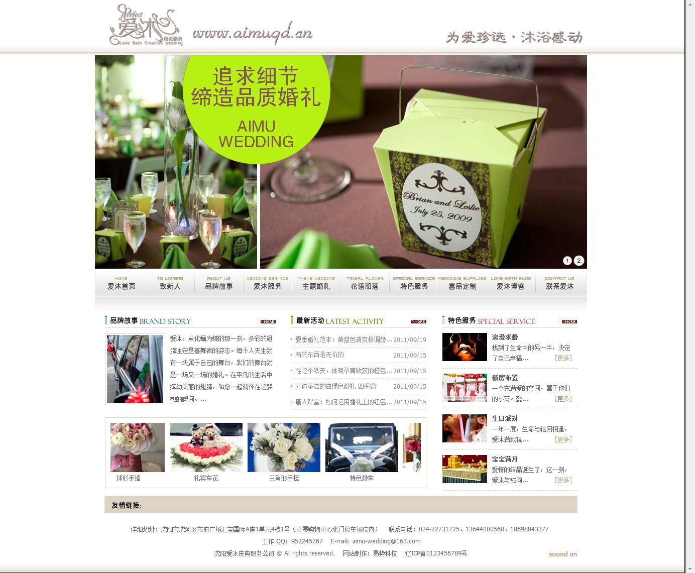 網站簡介: 沈陽愛沐慶典從事的業務包括婚禮主持、婚禮演藝、造型跟妝、攝像攝影、舞臺效果、場地布置、個性展示、室外服務、禮車出租、婚禮套系等。公司專注于中高端的婚禮市場,將先進的婚禮理念融會貫通,每一場婚禮都精雕細琢,力求完美。沈陽愛沐慶典的網站主要有9個板塊,支持在線視頻、產品展示、信息發布等功能。網站首頁以圖片跑馬燈的方式對愛沐的服務、產品進行展示,讓瀏覽網站的用戶對愛沐的具體服務有更加清晰的認識。同時,瀏覽網站的用戶還可以通過最新活動來了解愛沐舉行的活動,讓您可以更好的參與其中。而愛沐博客板塊也鏈接到愛沐的新浪官方博客,讓用戶可以快速找到博客地址。